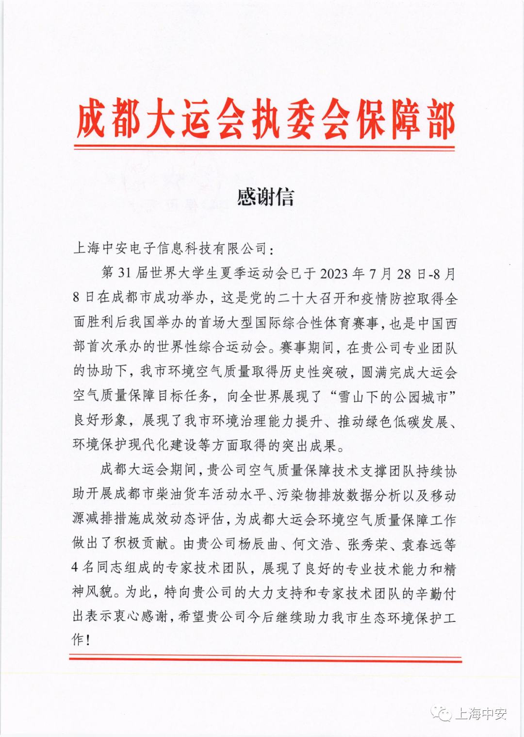 中安科技圓滿完成第31屆世界大學(xué)生夏季運(yùn)動會空氣質(zhì)量保障任務(wù)!(2023-10-9)